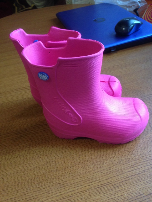 У нас сапожки этой марки, только с утепленным сапожков внутри, стоили правда около 600 р. в Ашане...но очень они мне нравятся, хотя я фанат кроксов)) По материалу честно, различий с Кроксами не вижу) а цена приятнее в разы...
