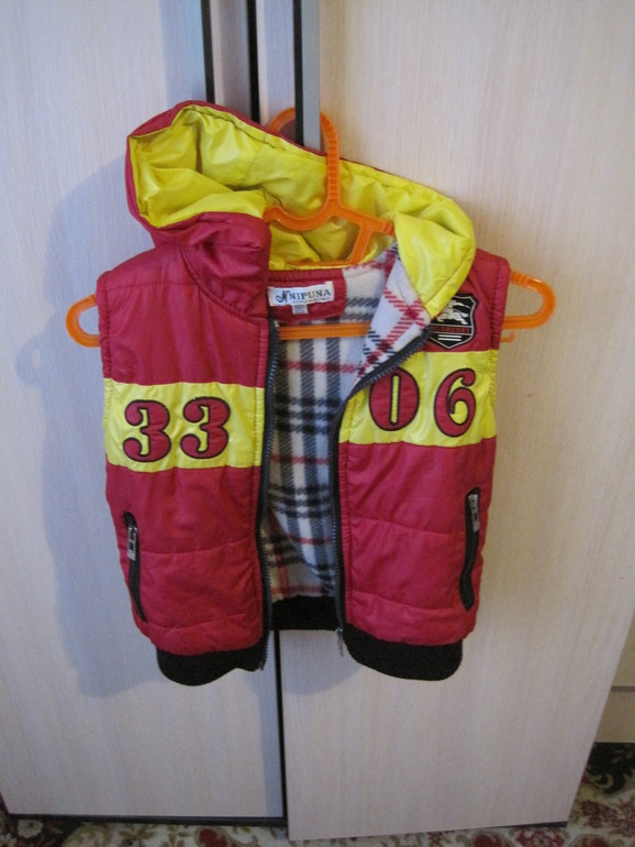 Детская одеждаСовсем сломала голову. Не знаю с чем скомбинировать. Подарили нам вот такую безрукавку. Ни я, ни муж таких вещей не носим. Смысла я в них не понимаю. Но сейчас погода-самый то. Но не знаю с чем можно скомбинировать такой "светофор". Подскажите пожалуйста. Особенно интересует верх, даже не знаю какой цвет подобрать