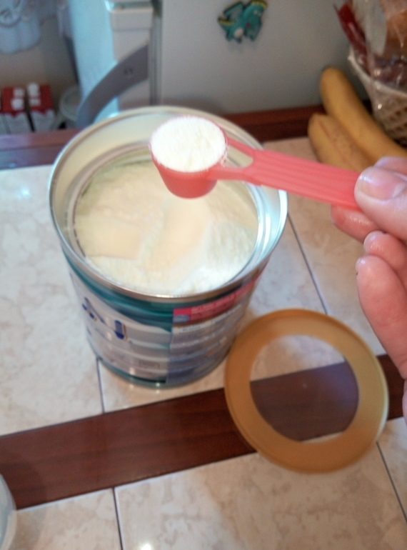Так как я давненько не покупала смесь, то про хитрость "оторви фольгу на половину, загни и будет тебе счастье,об которое легко убирать лишнюю горку с ложки" я забыла, и безжалостно фольгу оторвала. Всю. Но к счастью, там есть бортики к которым крепилась фольга, о них тоже неплохо горочка убирается