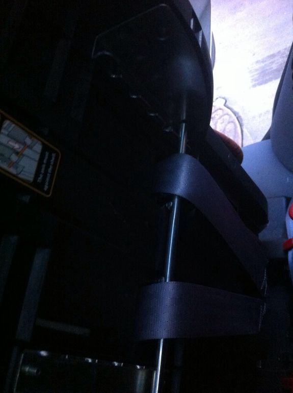 У нас не такое но на подобие .Сделайте кресло в максимально лежачие положение,и откройте его как будто вы пристегиваете и там сзади увидите железку на ней одеты ремни вытащите и проденьте куда надо и обратно прицепите к железки.