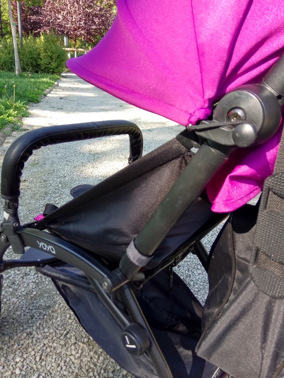 А теперь о моих впечатлениях. Коляска стоит очень много, как по мне так цена-качество не соответствует. За эти деньги можно было купить трость, к примеру peg perego mini, где качество ткани и сборка лучше, есть подножка. У меня ощущение что yoya сделана шатко: бампер очень нежно крепится, если ребенок полненький и навалится на него,то возможно может и выпасть. Стрейчевая ткань(в моем случае), похожа на ткань лосин, я ставлю под сомнение ее качество защиты от ультрафиолета, но плюс что она пропускает воздух, ветерок(фото прозрачности капюшона выше),под ней точно нам не жарко. Капюшон глубокий, хорошо затеняет, идеально ровный,пошит качественно, но без окошка, а его не хватает чтоб наблюдать за чадом. Капюшон можно сделать меньше, есть пуговка и петелька.