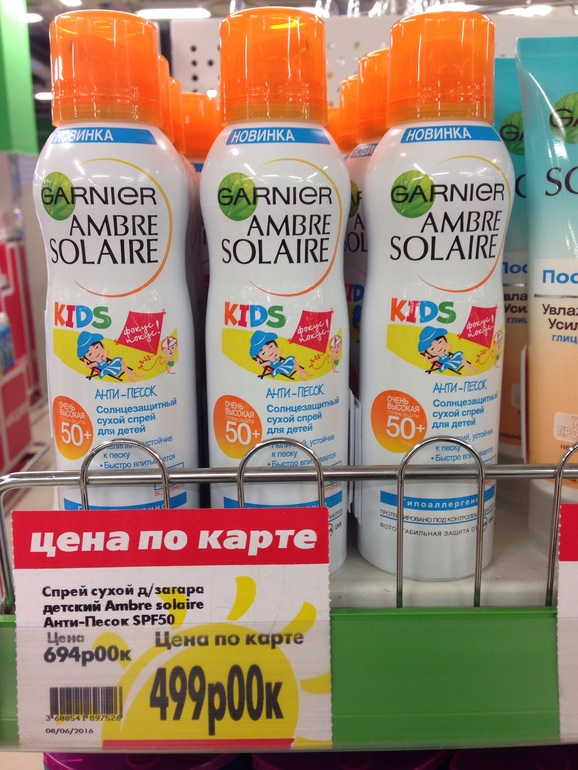 Девочки, отчитываюсь:) муж был в 4-х ситимаркетах Ambre Solaire там по 780 ре:(Но, я в обед бегала в Перекресток - там он стоит по 279 ре:) еще мона бонусы списать:) завтра пойду, куплю:)