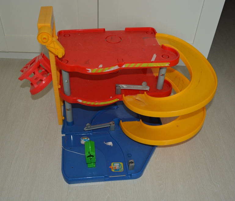 У нас в точности такая Бураго, только цвет немного другой, подарили на ДР в ноябре, это тихий ужас, детали между собой не держатся, рассыпаются. Сын психовал, пришлось абсолютно все детали склеить между собой суперклеем и еще для надежности стыки все скотчем проклеить. Все мелкие детали практически сразу вылетели и поломались либо потерялись, типо светофоры, фонари, шлагбаумы, дорога тож сломалась я ее выкинула. На сегодня от парковки осталось только это, руки чешутся ее выкинуть.