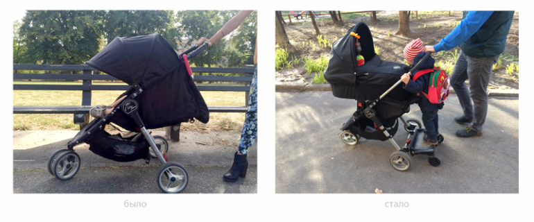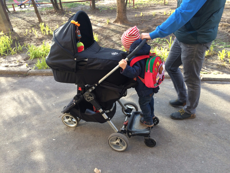 Мы докупили люльку baby jogger hard pram с адаптерами, подножку glider и соорудили вот такой дилижанс: