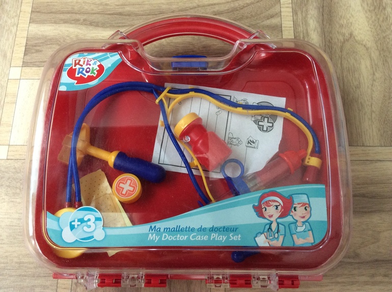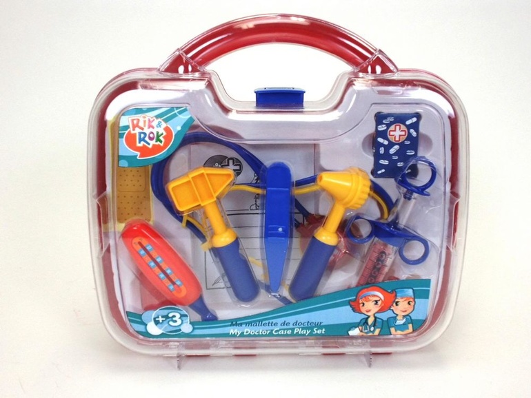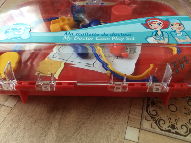 Чемоданчик не самый удачный для игры. Его сложно открывать и закрывать часто, как любят дети. Достать один предмет-целая история, надо положить горизонтально и открыть иначе все рассыпется из него. В общем, это не сумка медсестры. :-))