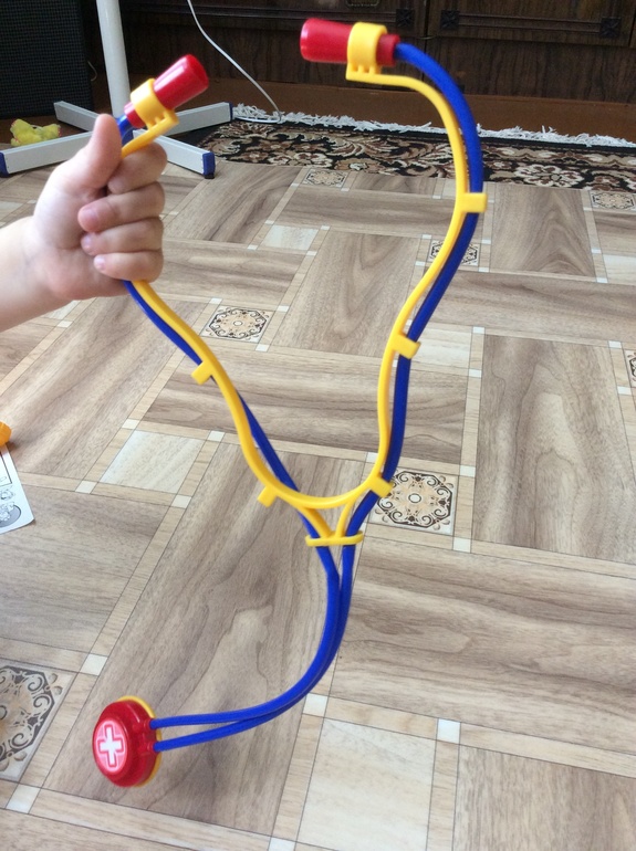 Стетоскоп. Меня немного смущает загиб трубки. В остальном претензий нет. В ушки вставляется хорошо (не глубоко), длина трубки достаточная.