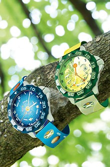 мы покупали часы swatch- по ним здорово время учить- у них мелкими цифрами написаны минуты, но сын с большим удовольствием носит папины спортивные электронные