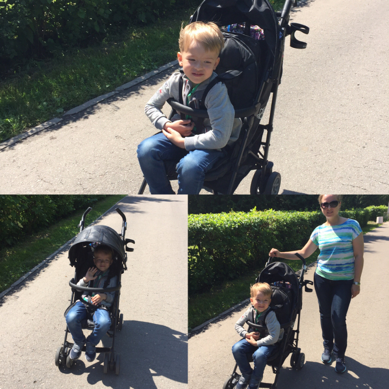 Ну и конечно ,после прогулки,могу с полной уверенностью сказать,что амортизация работает на всех колесах отлично,ход тихий,грохота от колес нет,по траве,гравию,плитке коляска едет достойно.