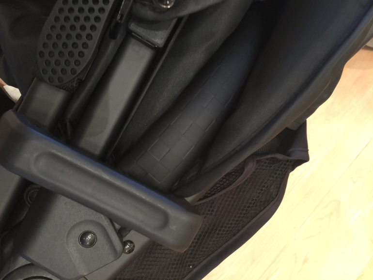 Бампер можно поднять вверх и благодоря тому,что он мягкий,коляска с ним легко складывается