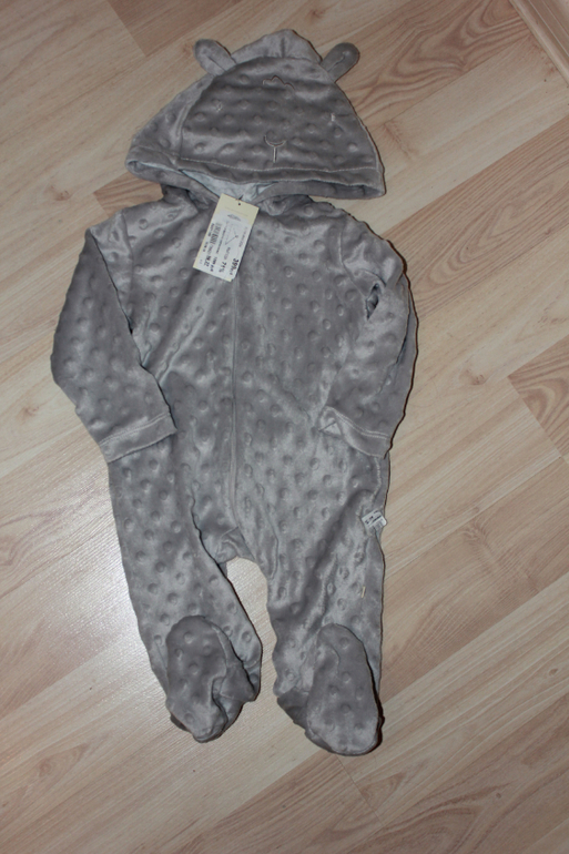 Комбезик для младшей, он велюровый, без утеплителя. Цвет светлее, светло-серый в живую. Мягонький. Решила пригодится на холодное лето (но велик правда будет). Цена 399, размер 74 см. Был один единственный и в этом размере. На капюшоне вышита мордочка, на фото не видно, подкладка красивая. Тоже кул клаб.