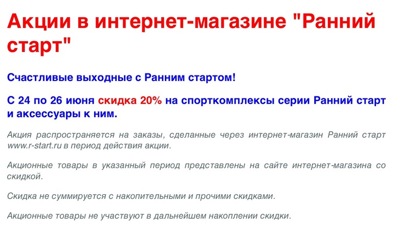 Делюсь купоном на скидку на детский спортивный комплекс (ДСК) "Ранний старт". Действует до конца 2019 г. По купону Вы получите скидку 3% на любой заказ. Вводите код: kryuchkov.m в корзине товаров в поле "Купон на скидку" и нажимайте кнопку "Применить купон".