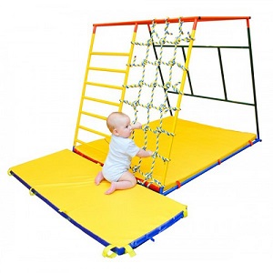 Ребенку 8.5 мес и он очень шустрый! Везде встает. ходит, подтягивается на руках на кухонном столе. Решили купить ему заранее подарок на годик спорткомплекс))))
