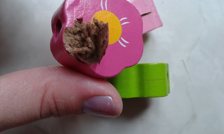 Неудачные покупкиПлюсы - красивые крупные бусины, сантиметра три-четыре в диаметре, т.е. ребенок не проглотит. Все, на этом плюсы закончились. Дальше минусы: отвратительный запах, я их протерла (ребенок же будет это в рот засовывать) и вся краска потрескалась, более того, две бусины лопнули и это НЕ ДЕРЕВО, как заявлено (деревянные только иглы-вдеватели), а МДФ.