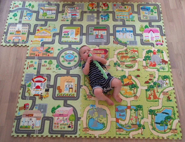 Идея была в том, что на нем можно голопопить, пока малыш. А затем катать машинки, когда подрастет. Ну и главное, как продолжение мягких мат в районе спортивного уголка.