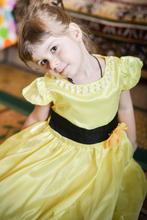Желтое платье с розой . Роза на брошке , можно отстегнуть .