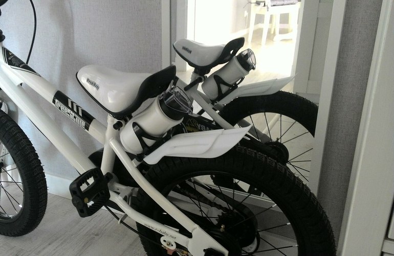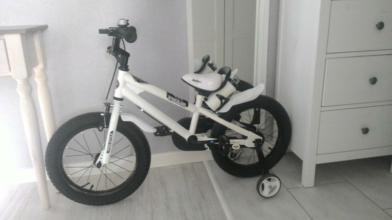 Спортивные товары. Велосипеды, самокаты, машины. СанкиНу вот мы дождались наш велосипед.Royal Baby Freestyle Steel 16", цвет белый. 2 года откатались на беговеле, равновесие держит очень хорошо, а вот педали крутит пока с трудом, поэтому пока оставили боковые колеса. Как научится хорошо крутить, сразу уберем их. Понравились широкие колеса, ручные тормоза и удобное сиденье. Ребенок оценил бутылочку для воды и звоночек.