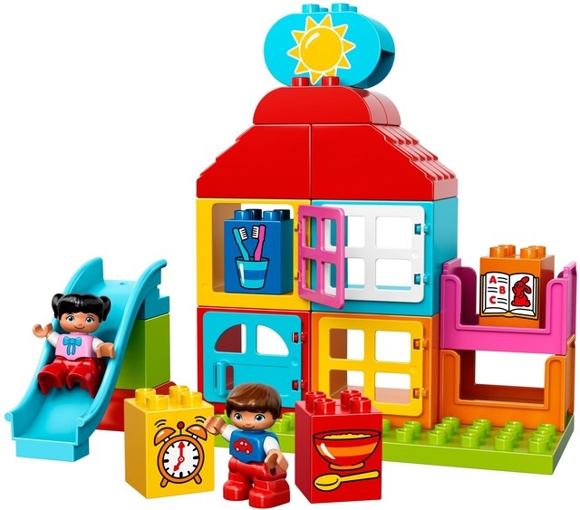 У нас эти два набора появились в 2 года. На поезд вообще не обращает внимание, а вот с домиком ещё может немного поиграть, даже имена девочке и мальчику дала. Мы не фанаты Лего, не знаю, хорошо это или нет.
