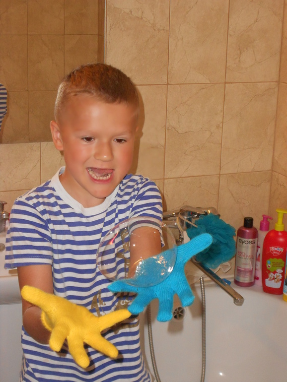 дочке тоже нравится, а мы сейчас у бабушки в гостях, так она решила обрадовать внучку, перелила новый бутылечек маленький в большую миску и разбавила еще, как раньше делали примесь воды и шампуня, вообщем пузыри наши накрылись)))вот ждем когда папа новые привезет