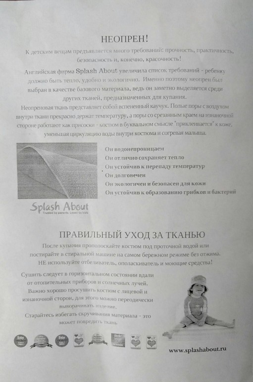 А вот обойтись без нижних трусиков, видимо, не получится. Все таки если вдруг малыш покакает, то отмывать неопрен будет сложно. Его нельзя стирать в машинке и на высоких температурах, нельзя использовать моющие средства. Материал пористый, а значит какахи скорее всего впитаются. Не буду утверждать - сын в него не какал.