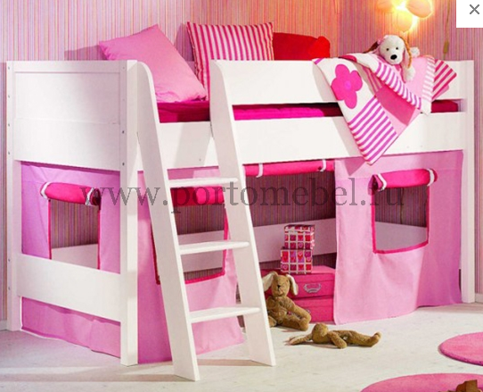 Привет, у нашей Миланы тоже самое. Купили гарнитур фабрики дива и сделали на заказ балдахин. Давольны все . Вот тебе и шалаш и к школе самое то. Да кровать она выбрала 120 , чтоб с подружкой вместе ночевать.)