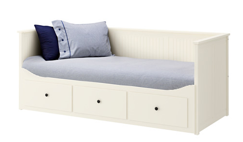 В настоящий момент имеем в детской вот такую кушетку (когда покупали, держали в голове то, что она раскладывается и можно спать с папой-мамой и редко приезжающей бабушкой). Эта кушетка у нас 3 года и я её терпеть не могу: раскладывать ужасно тяжело, матрасы тягать утром-вечером туда-сюда, односпальное место на кушетке очень некомфортное, то есть удобно спать только в разложенном виде, все дети да и взрослые бьются головой о бортики кровати, так как там есть выступы. Даже вот комфортно сесть и посидеть на ней совершенно никогда не получается. В общем мы эту кушетку все тихо недолюбливаем.