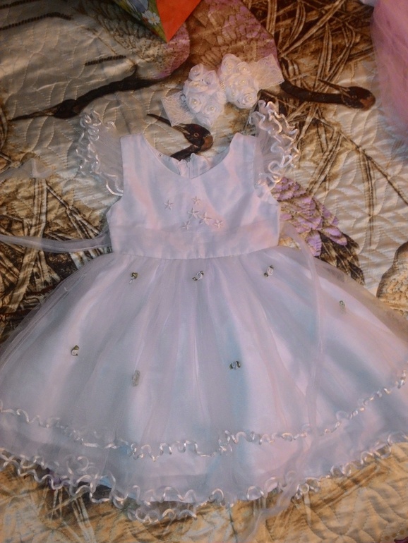 Я бы второе одела. Белых платьев у девочки еще море будет, на тех же утренниках и НГ. А второе очень нарядное.