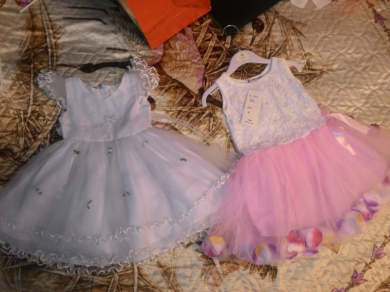 Я бы первое одела на годик. Пышное, нарядное как раз для таких малышек. А второй наряд на др братика.