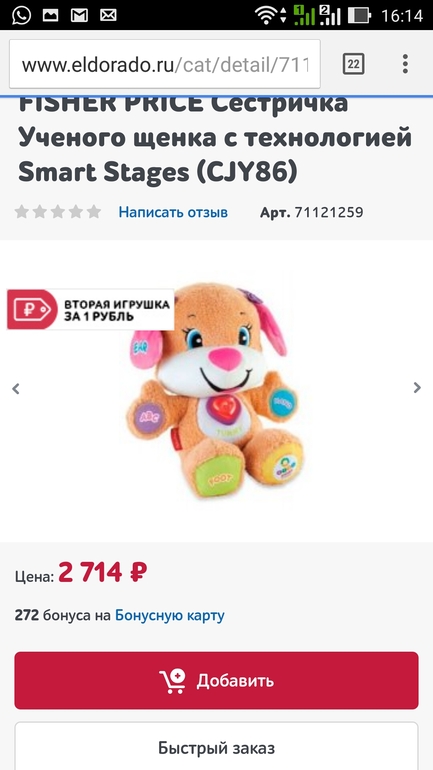 Распродажи. Скидки. Акции.У нас в эльдорадо много игрушек в наличии. Мне нужна только 1 на подарок. Могу вторую отправить почтой, а цену поделить по полам.