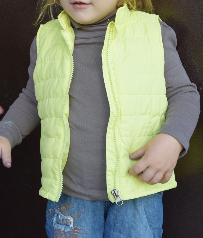 Куртка застегнута, внутри жилетка.