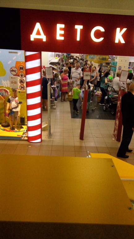 Распродажи. Скидки. Акции.Но уже весь магазин разнесли,если только из одежды можно было что найти.Мебели,колясок,кресел и всего нормального нет уже.Народу в кассу человек 50 .Я даже стоять не стала.Одежда не нужна.