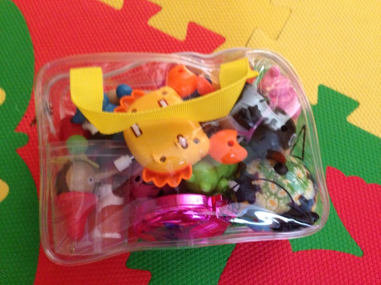 У нас есть походная сумка. Я купила много мелких игрушек, некоторые заводные, пачку салфеток, бумажные платочки и много другой мелочи. Очень помогает скоротать время, если нужно-пришлю фото)