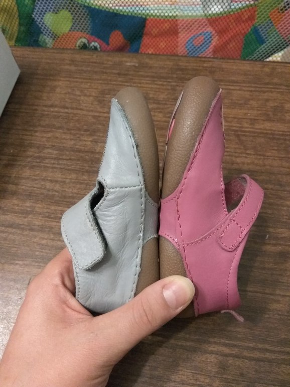 Обувь детям, для старшей, нареканий нет ни каких. А вот для младшей, не понравились( Но это я сама в первую очередь не подумала, что такая обувь не подойдёт для первых шагов. Очень мягкие, ногу не держат, сильно мнутся, ребенок их легко снимает.