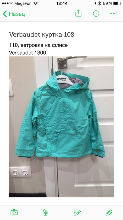 Курточка 1300 вышла. Она внутри флис, рукава без подкладки. Взяла вторую. Первая была оранжевая. Немного маломерят. Та была 94, эта 104.