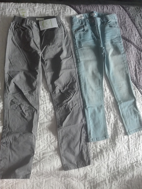 штанишки размер 8 лет и одни и вторые, на бирке написано на рост 126, т.к. дочь сейчас ростом 120, брала на следующий год, но посмотрите какая у них разница