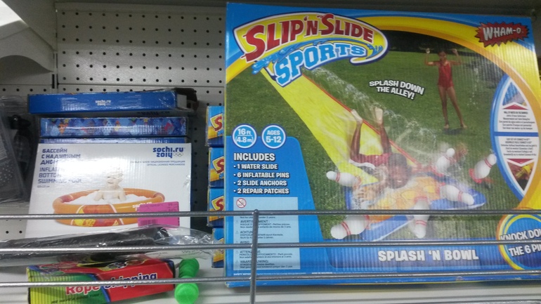 Ну и кому интересно,в Фамилии была распродажа бассейнов маленьких надувных по 99р и надувных дорожек по 309р,фото ниже.