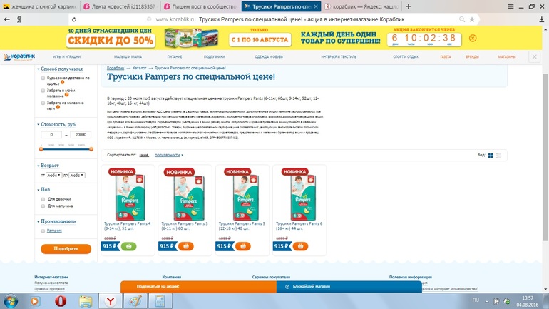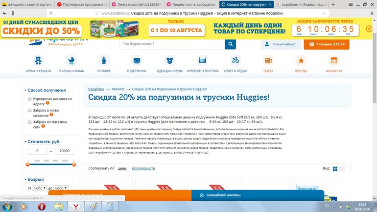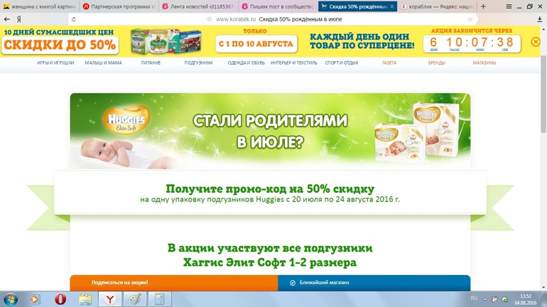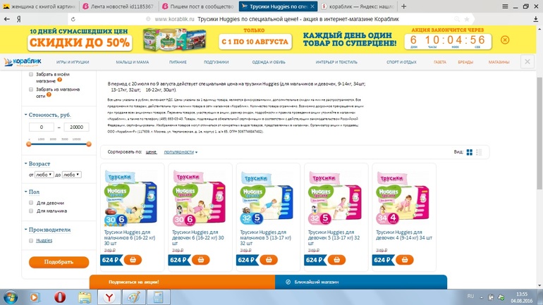 Распродажи. Скидки. Акции.Многие сегодня в Кораблике по акции трусиками Хаггис затариваются, а про другие акции почему-то молчок на ББ, хотя они уже не первый день. Может, потому что их видно только в полной версии?:)Взяла себе в довесок на пробу некоторые, может кому еще пригодится.