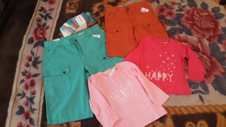 Только хвасты! (одежда и обувь)И я, наконец, получила первую посылочку. Зеленые шорты на 14 лет, оранжевые на 6, кофточки на 24 месяца.