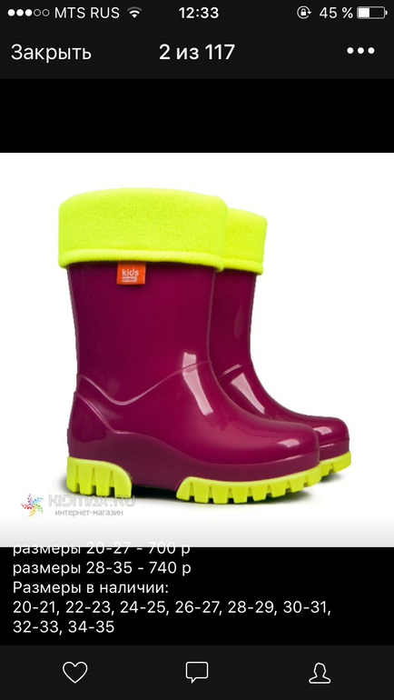 А про вторые поняла что на осень, вот и советую посмотреть ЭВА. Осенью их поносите после дождя с носочком по лужам, а слякотной зимой с вставным сапожком. И вес малый вес огромный плюс