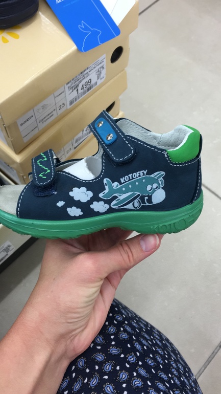 Из обуви на Котофей скидка 50%. На девочку кожаные туфли 22 и 24 размер по 999р, на мальчика открытые 20, 22 и 24 размер по 1499р (это на коробке, по сканеру не проверяла, может и дешевле).