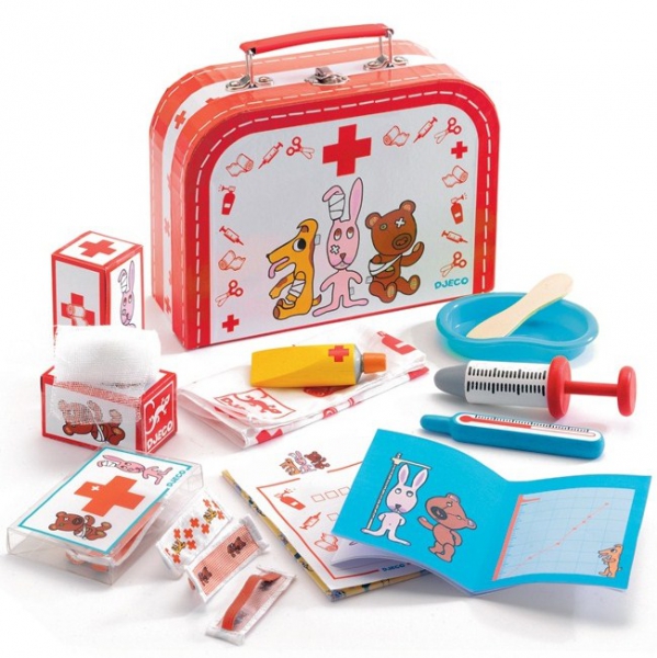 у нас тоже чемоданчик доктора Плюшевой, как в предыдущем комментарии (дочка в три с хвостиком попросила "у деда мороза", увидела у подружки в гостях). очень "подарочный" вариант, качественный-интересный, дочке нравится! хотя с другой стороны большого количества инструментов в нем нет.