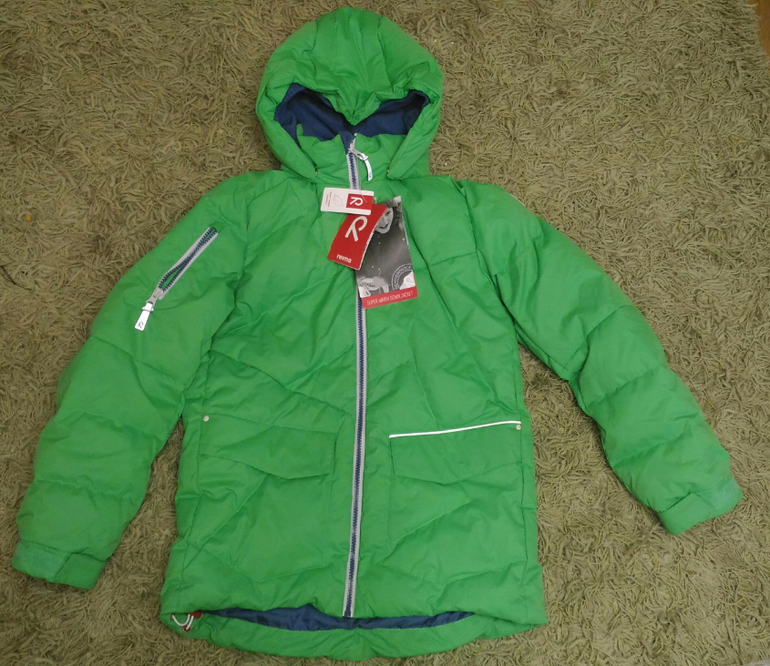 2. Пуховик рейма размер 146 удлиненный для школы (куплен на распродаже на WB за 4270 руб.). Цвет зеленый очень красивый, у меня сын очень любит зеленый, поэтому он от пуховика в восторге))) Цвет неочень передался, т.к. фоткала на телефон (на второй фотке цвет больше похож на реальный).