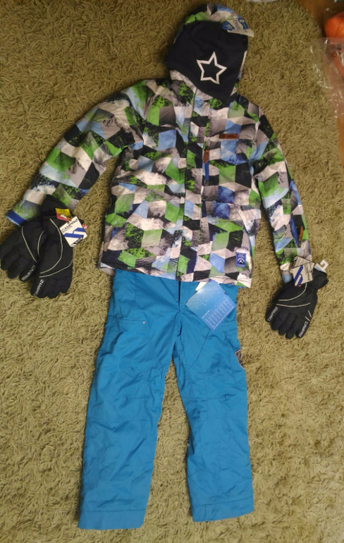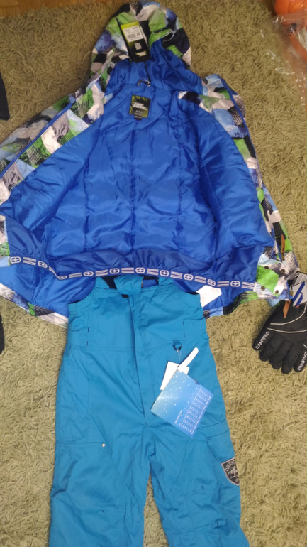 1. Комплект горнолыжный зимний: штаны обермайер (заказаны еще в 2014 году с Америки,ждали своего часа)+куртка NoFear(куплена по распродаже в этом году за 2100 на сайте спортдирект)+перчатки 3 пары(куплены по 210 руб. за пару на том же сайте спортдирект)+шапка Lassie (куплена на WB за 406 руб..). Комплект получился ярким, качеством куртки я пока довольна, принт мне понравился, посмотрим как в нОске будет!