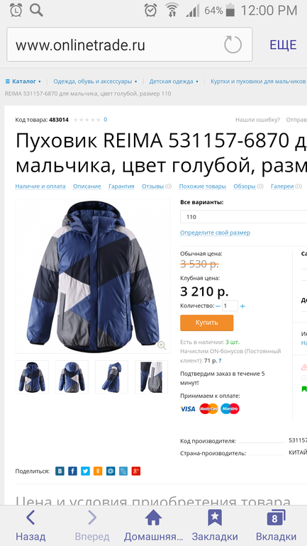 Распродажи. Скидки. Акции.Попадалась здесь эта куртка в майтойз. В онлайн трейд цена лучше. Есть выбор размеров. С бонусами вообще отлично можно взять