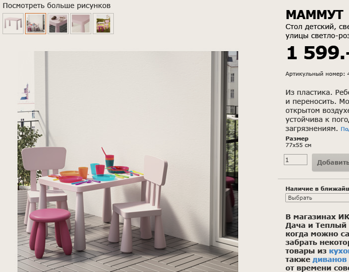 У нас на кухне наоборот меньше времени, рисует в комнате на кровати нашей. Игрушки тоже в комнате. Пластилин лепим в стульчике её Икеевском. Меня он как раз раздражает отсутствим поддержки для ног... Вредно это. Кид фикс нужен, но ценааааа. Посмотрим, возможно попозже уговорю себя и мужа, сейчас у нас на очереди кроватка и стол(((