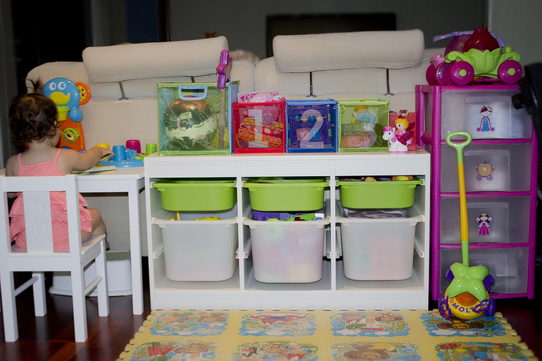 Ох, как я вас понимаю :))) У нас тоже ничего не приткнуть. Я игрухи храню в ящиках (пластиковые Икея) под кроватью. Всё для рисования просто складываю в коробку, коробку под стол.