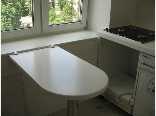 У нас на прошлой кухни был крошечный стол. Из столешницы узкий - начинался под подоконником почти во всю длину подоконника. Перекусить хватало. Для ребенка советую растущий стул, его кстати можно со столом купить. Вообще проблемы не будет. И вам если рада можно на него сесть-встать. У нас кид-фикс идеальный