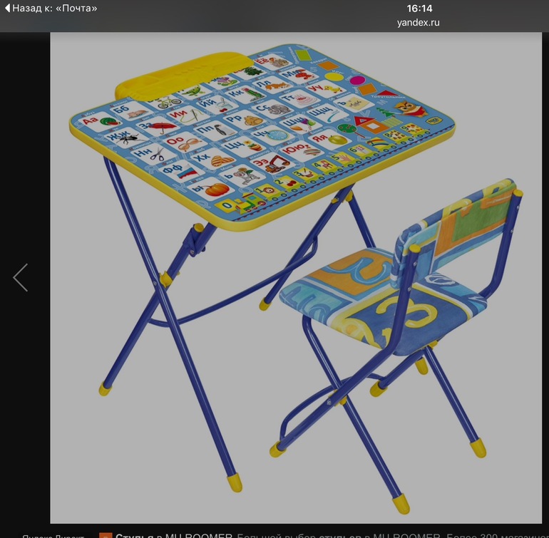 А у меня в комнате за икеевским кушает столом и стульчиком,если не на кухне.У вас нет?на кухне икеевским высокий стул деревянный,но он к столу.А в комнате маммут меня и рисуем,и кушаем.