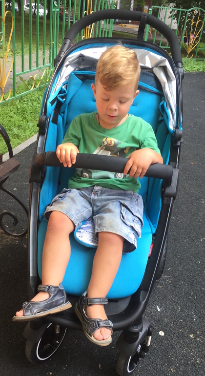 И вот прошли годы...тут на днях подвернулась удача - я поучаствовала в тест-драйве коляски от Phil &Teds.Хоть мальчики мои уже и выросли и 6-ти летнему Ване коляска уже совсем не нужна,но Илюше,которому еще нет 3 лет зачастую она необходима для долгих прогулок и путешествий.Итак,мы отставили в уголок наш "стульчик на колесах" - коляску-трость,и на неделю переселились в компактный кроссовер Фил энд Тедс,на четырех колесах,с плавающей спинкой,огромным козырьком...ну,обо всем коротко и по порядку.