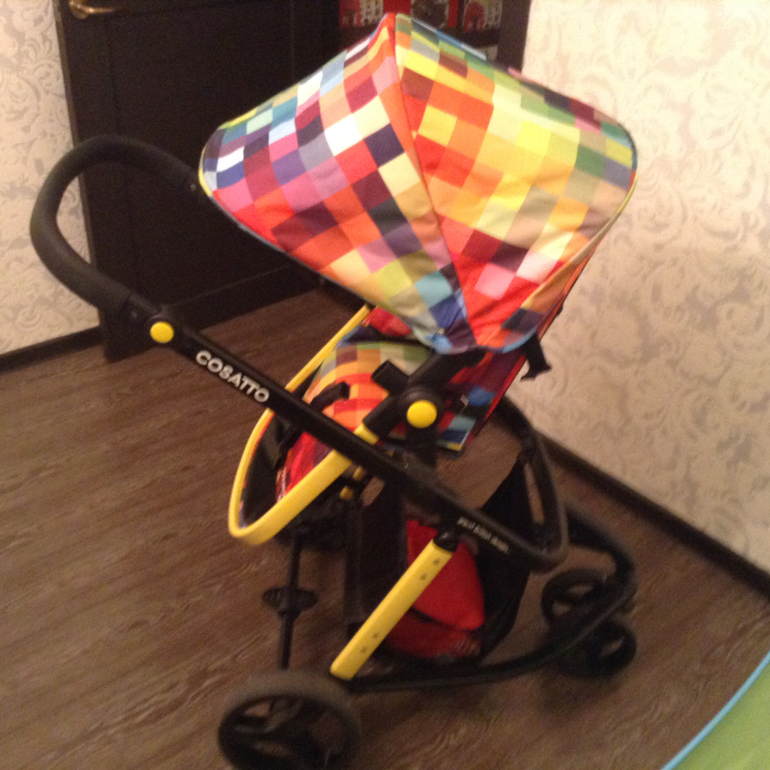 Изначально нам досталась понаследству Tuttis Zippi, но откатав три недели, я поняла что она мння совершенно не устраивает. И начались долгие и мучительные поиски новой коляски. Хотелось что-то красивое, компактное и в тоже время удобно для меня и ребенка. На свой страх и риск, так как на тот момент отзывов в интернете было минимум, была куплена наша красавица Cosatto Giggle. Коляска очень легкая, люлька с одобной ручкой, не на капюшоне как у большинства колясок, а на самой люльке, очень одобно носить пешком по лестнице. Колеса небольшие, но по снегу идут хорошо, переднее колесо сдвоенное поэтому коляска устойчивая, не опрокинется. На капюшоне у нас были разноцветные крадратики, ребенок их рассматривал с интересом очень долго. Люлька не большая, но до 6-7 месяцев вполне хватит, вмкомплекте к люльке идет матрасик и дополнительное утепление по перемитру, если его снять будет больше места. Прогулочный блок гамачком, удобный, особенно если ребенок любит засыпать полулежа, потом аккуратно безовсяких рывком переводится в полностью лежачее положение. Устанавливается лицом к маме и походу движения. В комплекте теплый флисовый чехол на ножки, очень практичный, особенно когда ребенок начинает ходить и потом приходится сажать в коляску в грязной обуви, все отстирывается и ни каких пятен на черном не видно. Капюшон не большое, полностью от солнца не закрывает, мы накидывали поверх капюшона тонкий хлопковый плед из mothercare. В итоге откатали в коляске 1,5 года. Потом дочка отказалась сидеть в колясках и мы ее продали. Не разу не пожалела о покупке, вероятно для второго малыша тлже возьму такую коляску.