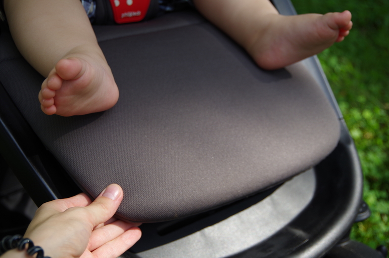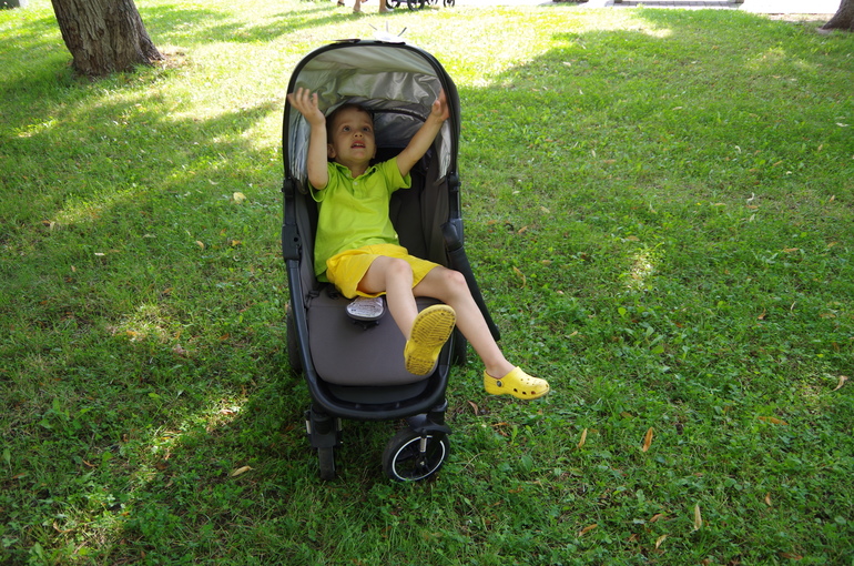 Мы едем к месту нашей дислокации и я ощущаю второй (и как оказалось, последний, но существенный) недостаток коляски: едет фил, нагруженный 10кг ребенком и не тяжелой сумкой очень туго. Одной рукой управлять коляской совершенно невозможно. Мне приходится прикладывать усилия, чтобы повернуть ее в нужное направление (колеса не зафиксированы, если что, и с тормоза она снята). Я, конечно, принимаю тот факт, что я не атлет ни разу, но даже чтобы залететь на тротуар, мне приходится всем весом приложиться к коляске. Или я привыкла к малому весу своей текущей коляски. Или проблема в моем небольшом весе и большом росте: короче с центром тяжести что-то происходит. Ведь остальные участницы так хвалят ход коляски! Тут совет таким же дрищам худосочным, как и я: перед покупкой примерить коляску на себя.